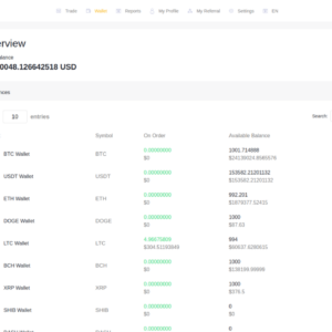 - Referral: There is a three-level referral system available with the Exchange. Admin can set the amount of the referral bonus.