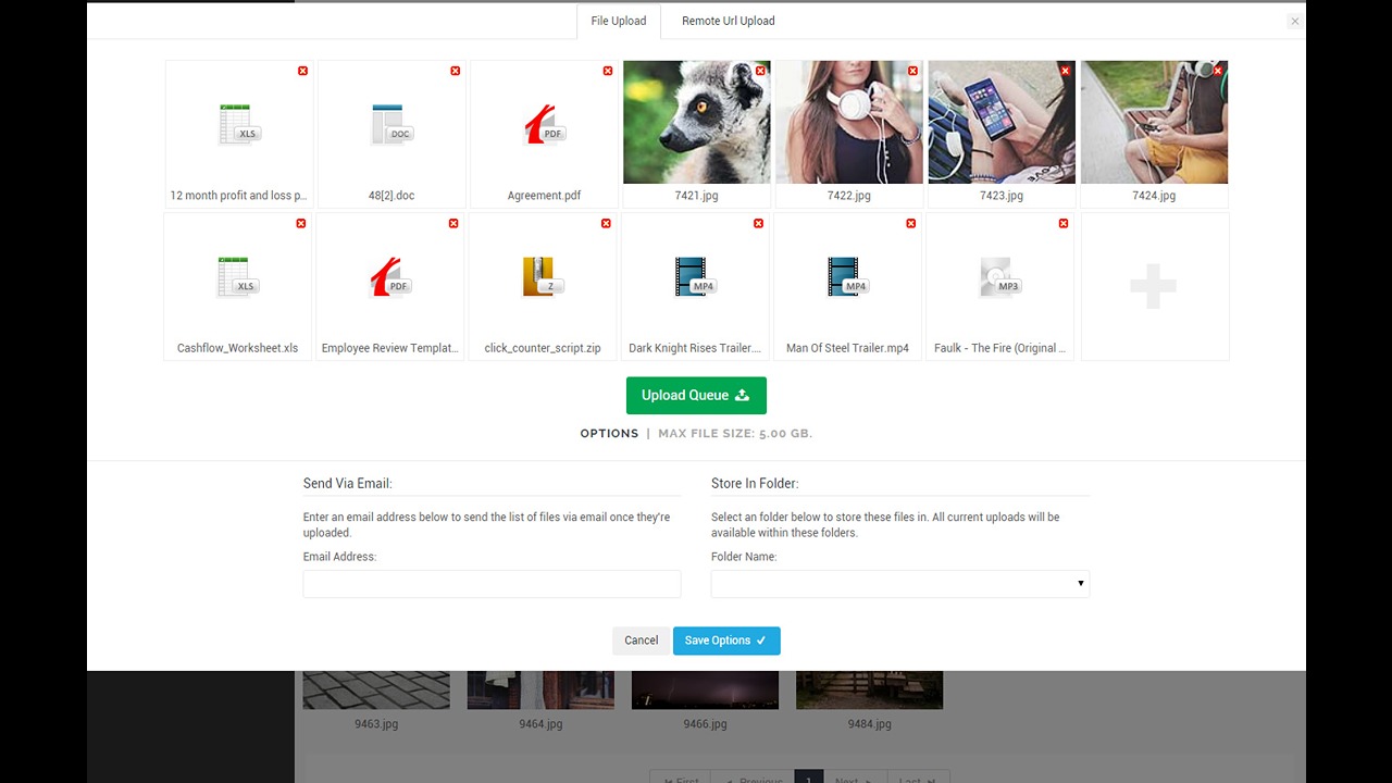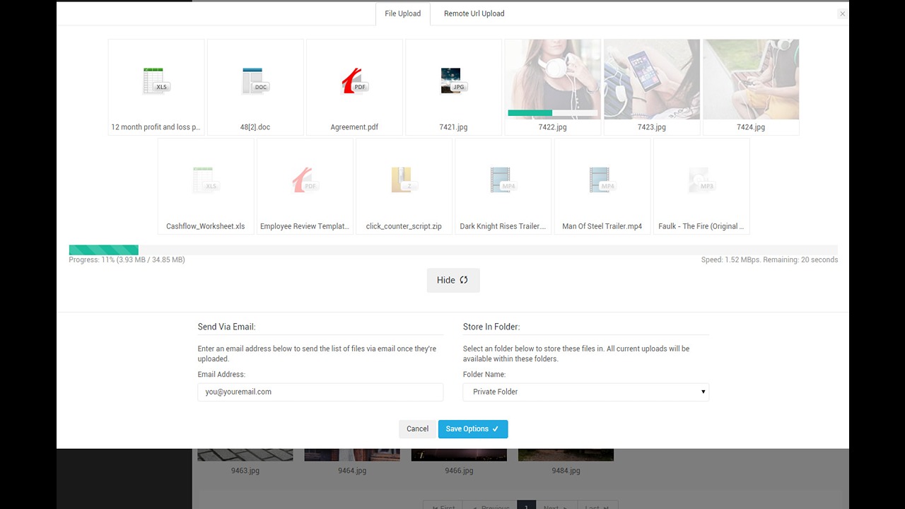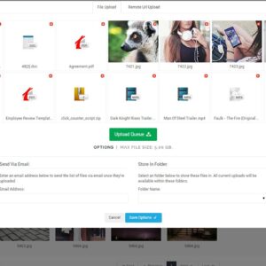 - Multi-file uploader with progress. 10GB+ filesize supported.